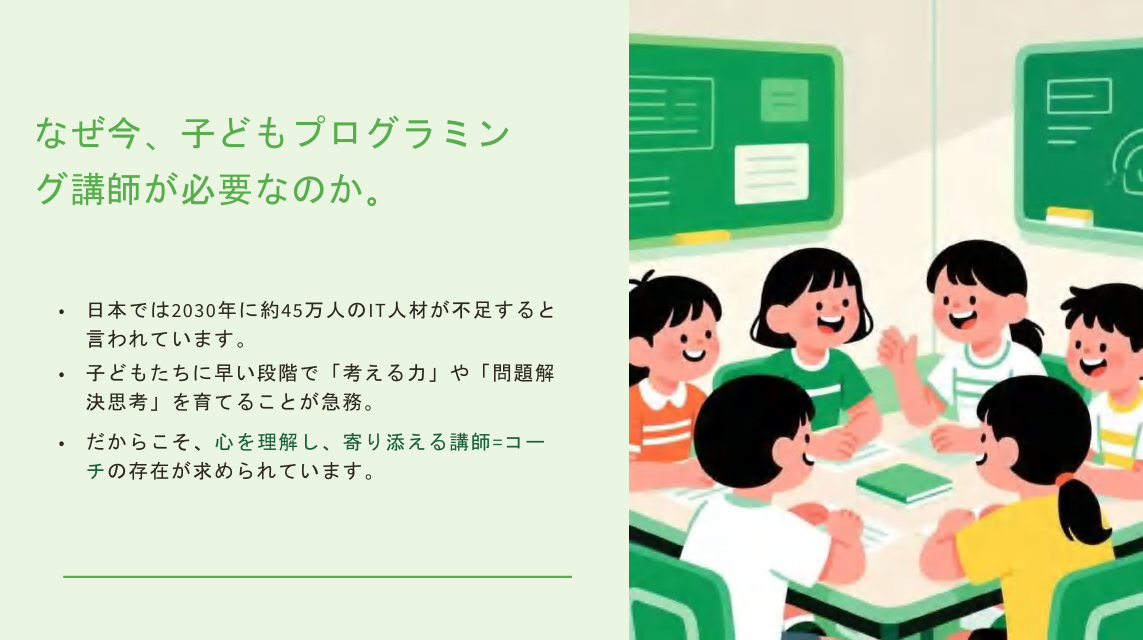 この作品を通じて、私たちが大切にしている「教える人ではなく、寄り添い・導くコーチ」という理念が、とても温かく、わかりやすく表現されていました。